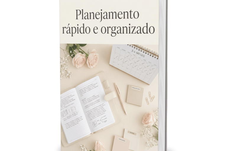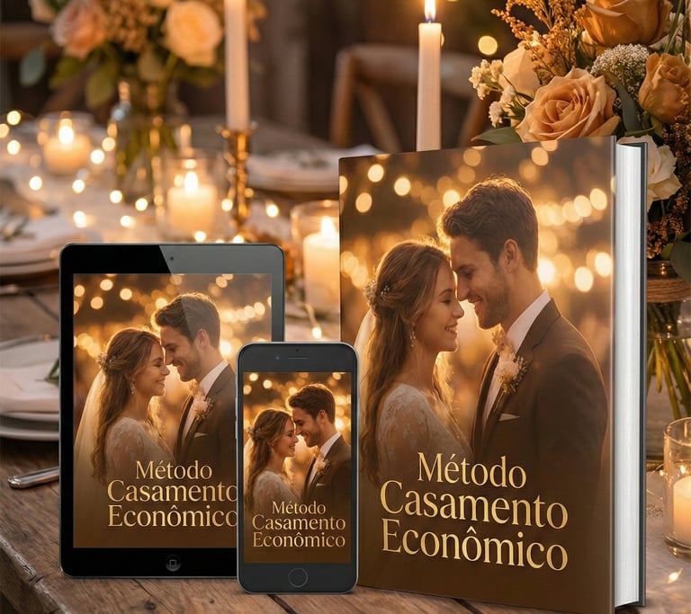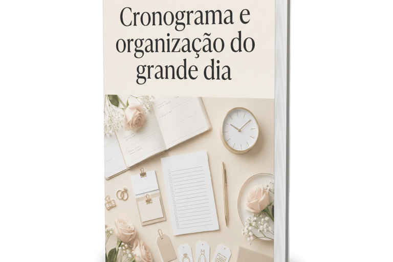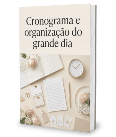É um material exclusivo que te guia passo a passo por todas as etapas do casamento, com estratégias práticas, listas detalhadas, dicas de buffet, decoração, fotografia e exemplos reais de casais que economizaram milhares sem abrir mão da qualidade.
